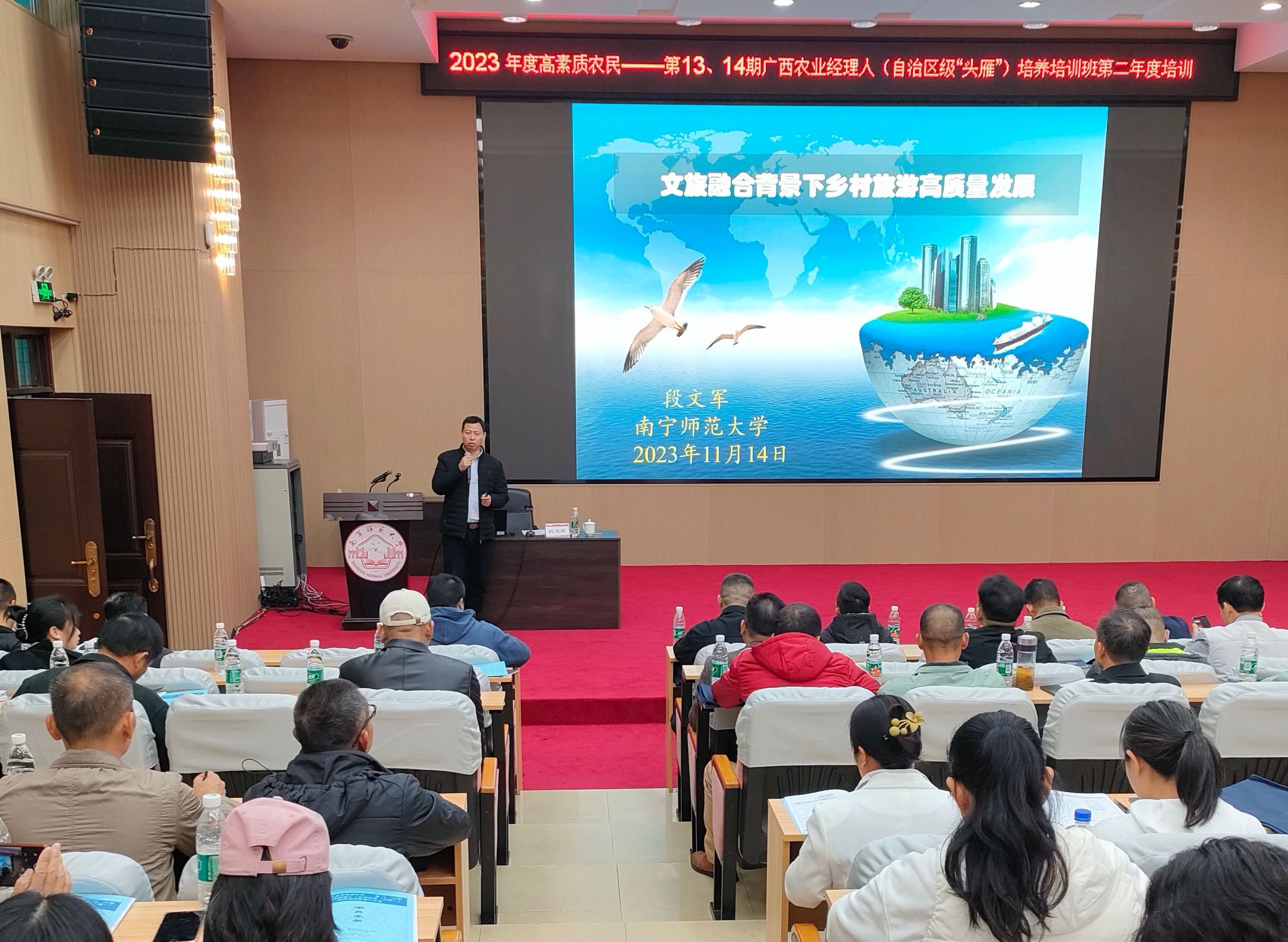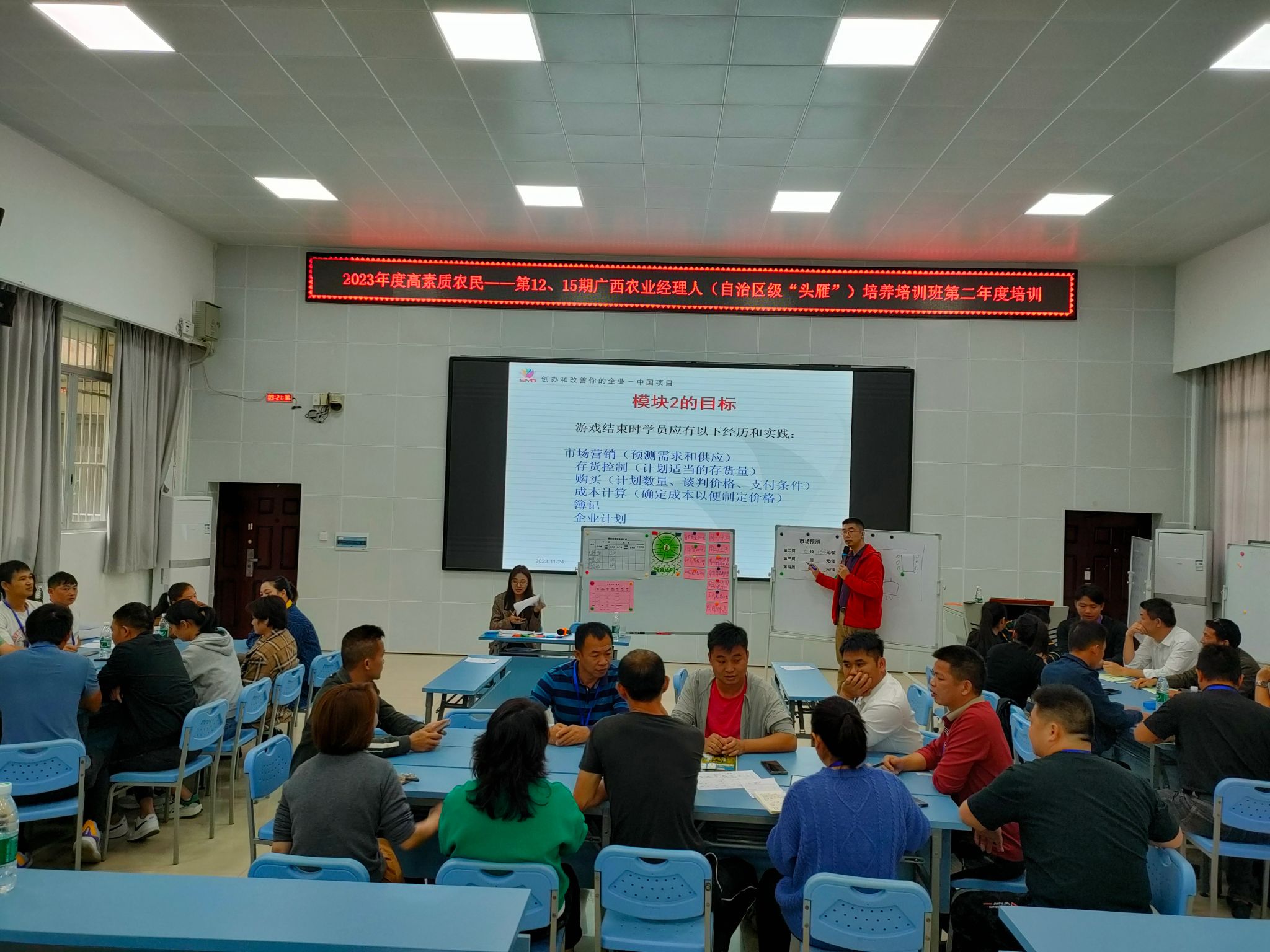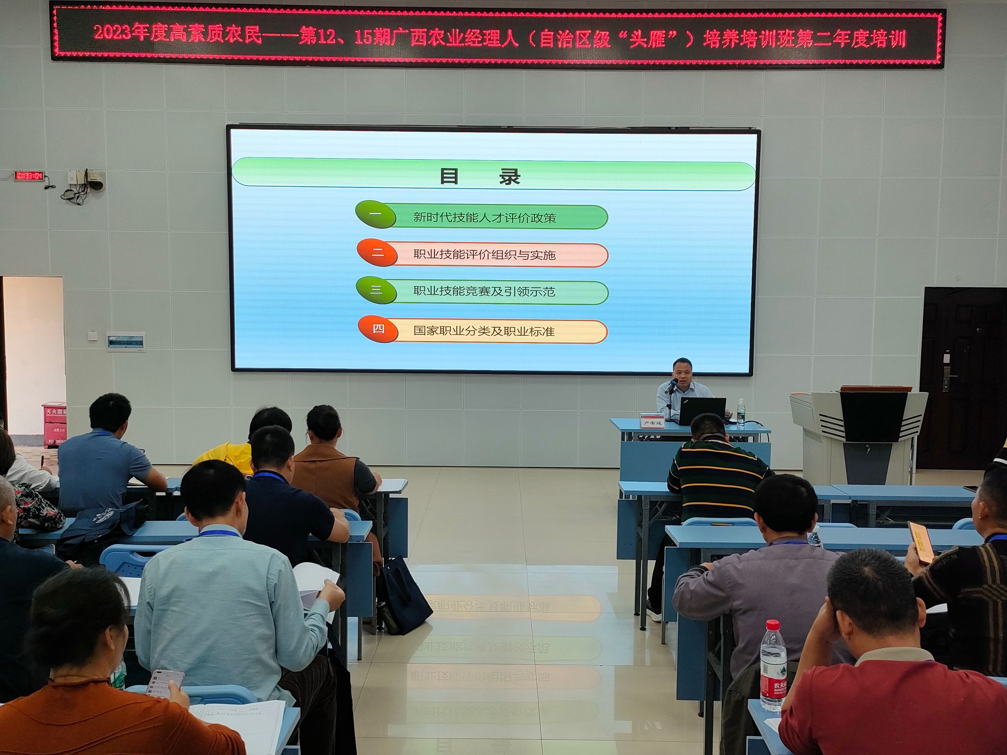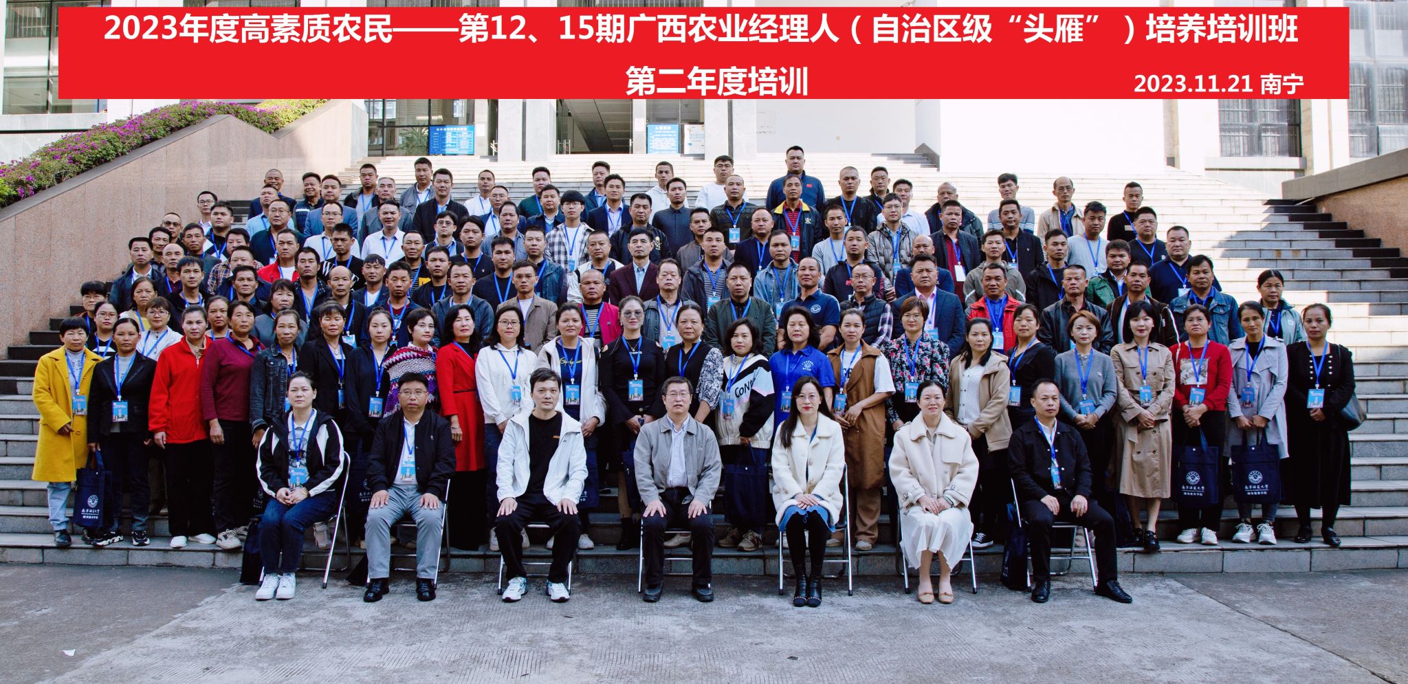 11月13日至11月27日,由自治区农业农村厅主办,BET体育365登录入口继续教育学院承办的2023年度高素质农民——第12至15期广西农业经理人(自治区级“头雁”)培养培训班第二年度培训在BET体育365登录入口明秀校区开展。4期参加培训的学员共约350人,每期培训时间8天。学员们均已参加2022年第一年度培训,今年再次返校参加第二年度培训。