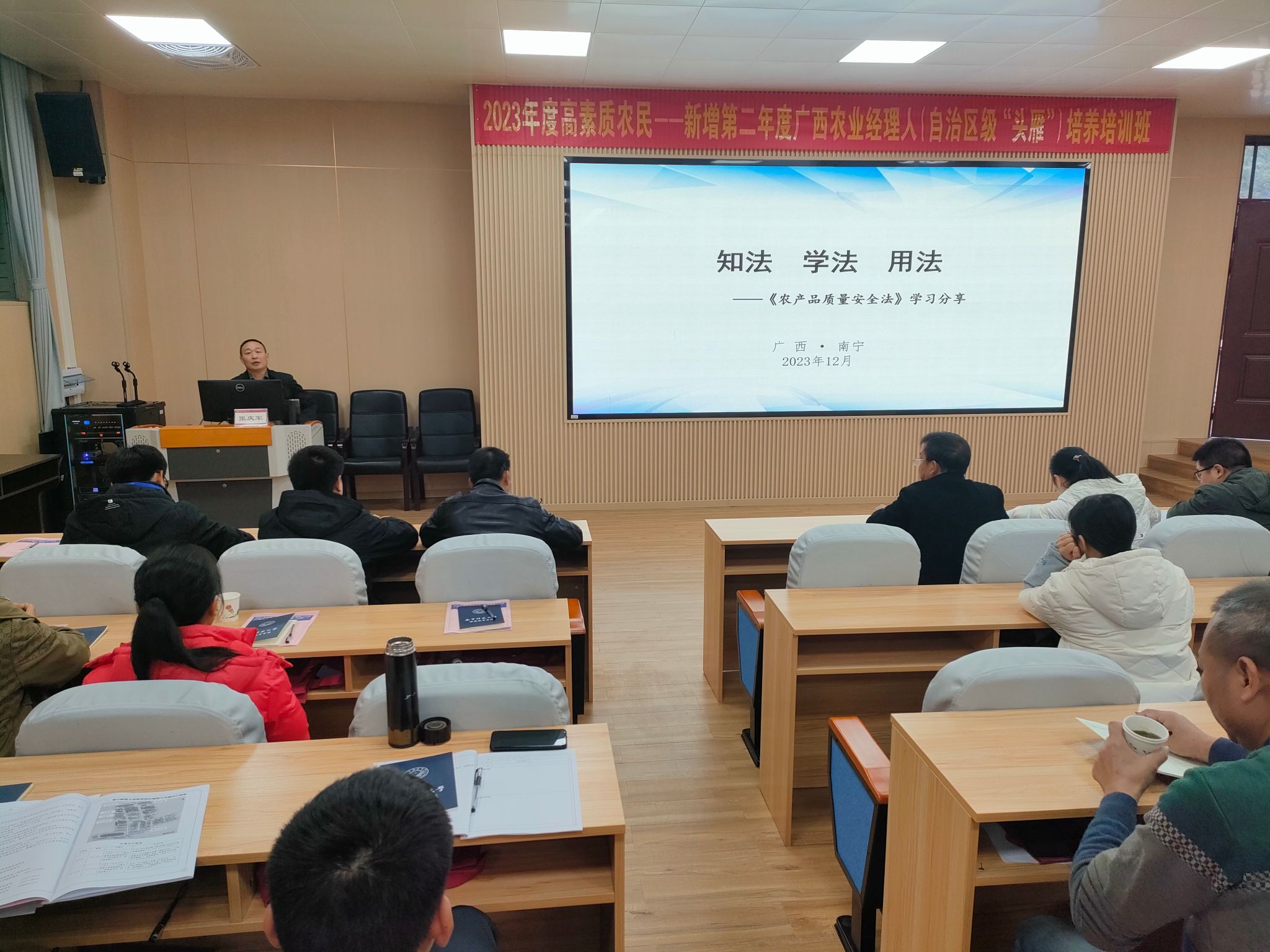 为了满足部分学员因个人工作、农事繁忙等原因错过所属期数的培训时间,BET体育365登录入口特于12月24日至31日,经自治区农业农村厅批准,增开2023年度高素质农民——新增第二年度广西农业经理人(自治区级“头雁”)培养培训班,共有87名学员参加了此次培训。