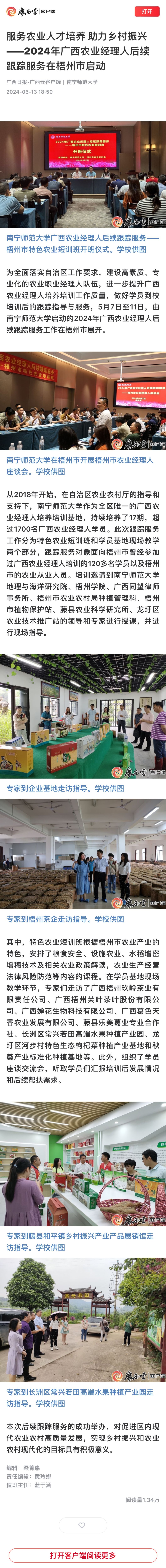 【媒体报道】广西日报-广西云客户端:服务农业人才培养 助力乡村振兴——2024年广西农业经理人后续跟踪服务在梧州市启动