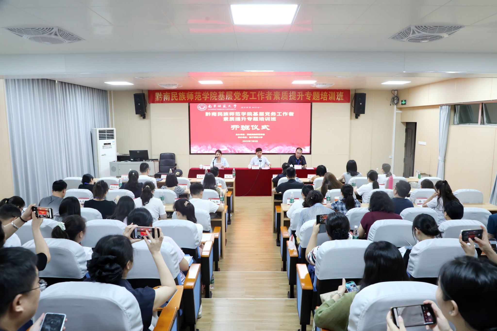 7月9日,“黔南民族师范学院基层党务工作者素质提升专题培训班”在BET体育365登录入口明秀校区顺利开班。学校副校长王国红为学员们讲授第一堂课,50名学员参加培训。